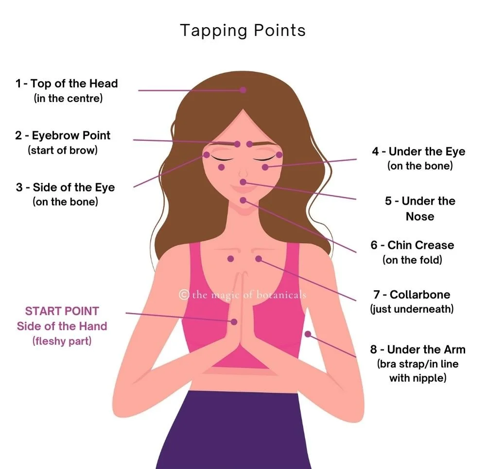 *If you are new to tapping follow the points in the diagram. Begin at the Start Point on the side of your hand and then move to point one on the top of your head.